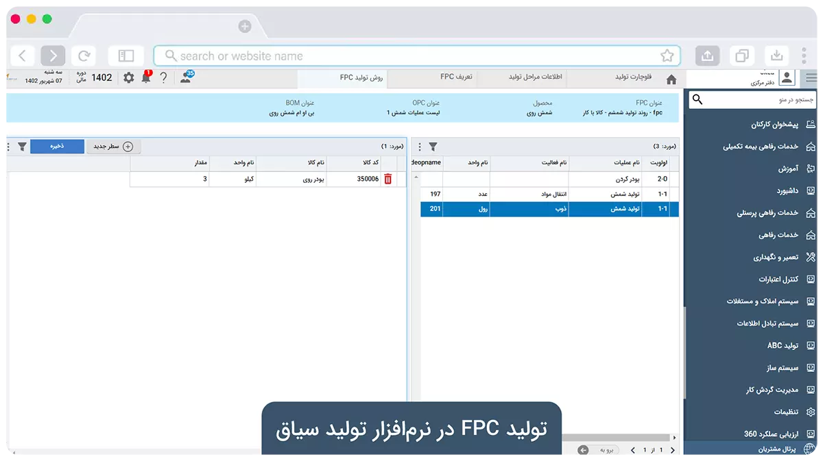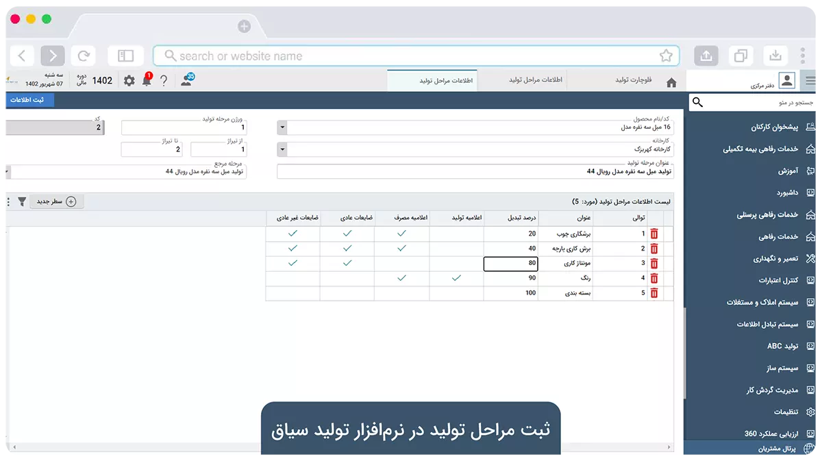 برگزاری سلسله جلسههای نیازسنجی، تدوین و تصویب سند گزارش شناخت (شامل سیستمها، روشها، فرایندها و...)، ارایه پروپوزال و تعریف پروژه، عقد قرارداد، نصب و استقرار سیستمهای آماده، سفارشیسازی در محل سازمان تولیدی، تحویل سیستمهای سفارشی، و آغاز فاز پشتیبانی.